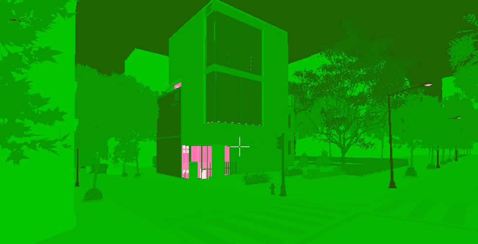 From here, we begin adding more detail to the scene, such as surrounding buildings, trees, and cars. To ensure that our scene is as compelling and realistic as possible, we always have references on hand.